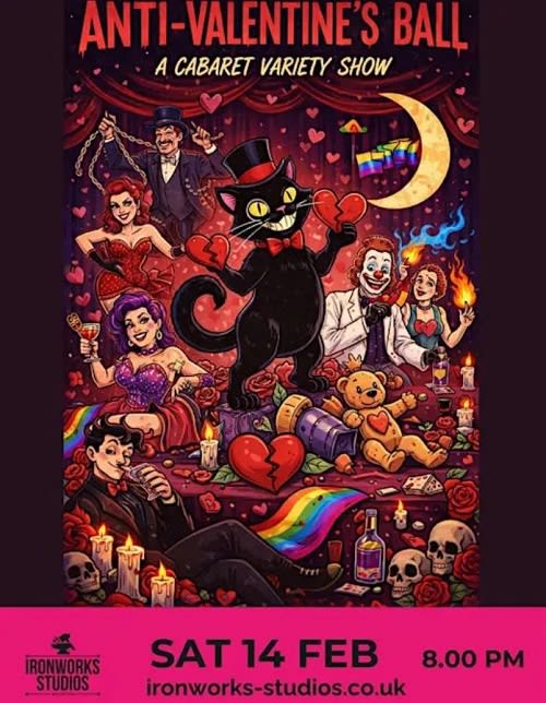 Skip the roses and rip up the rulebook. The Anti-Valentine’s Ball is a gloriously unromantic night of live vocals, drag, and cabaret celebrating the single, the heart-weary, and anyone who’s just not in love with love.